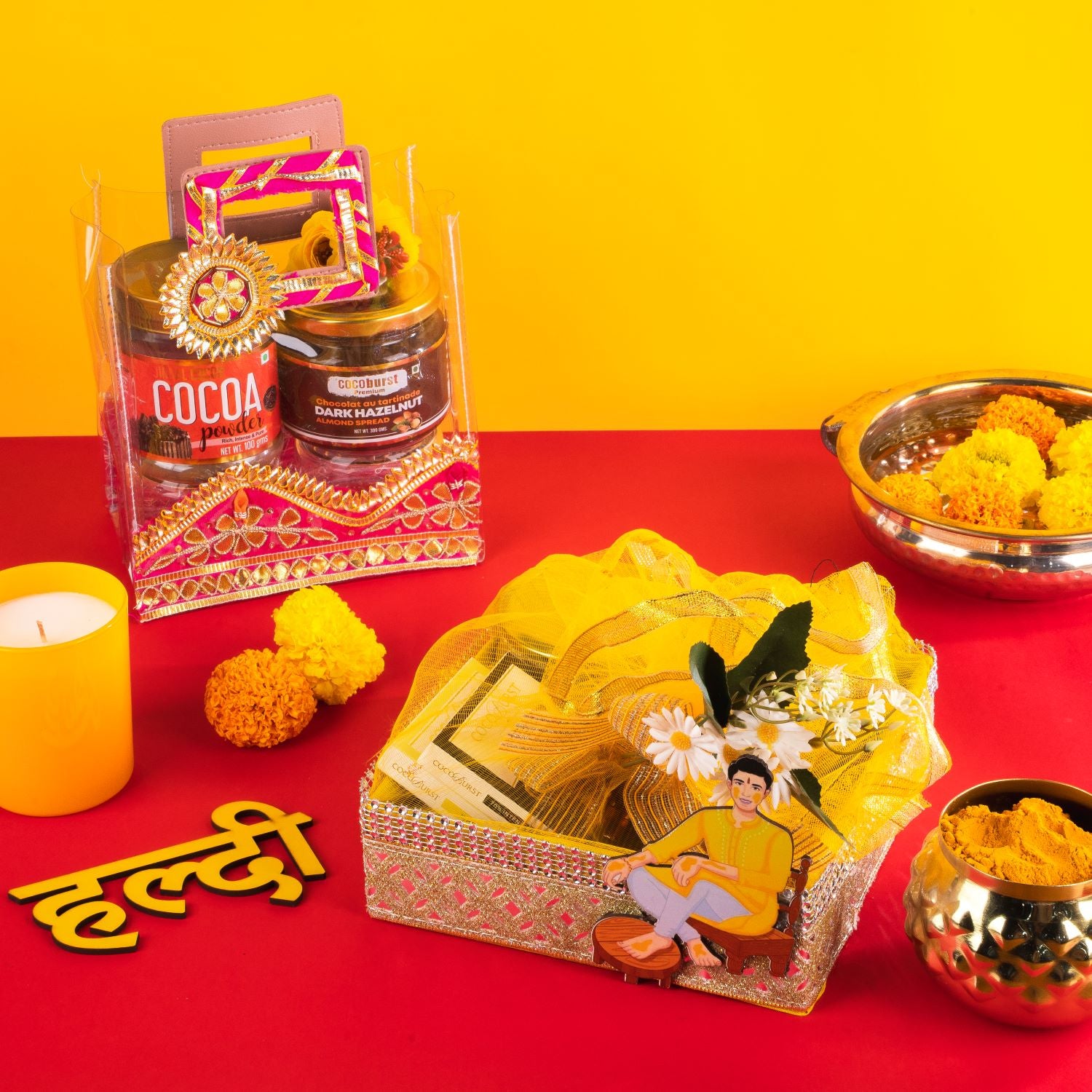 Celebrate the golden glow of the Haldi ceremony with a hamper that blends tradition and indulgence. Our Haldi Hamper is thoughtfully curated to infuse sweetness into your pre-wedding festivities.