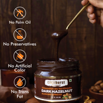 Contains Cocoburst Dark Hazelnut and Almond Spread Dark, Nutty & Divine, Delectable, Unique, Dark Chocolate Spread