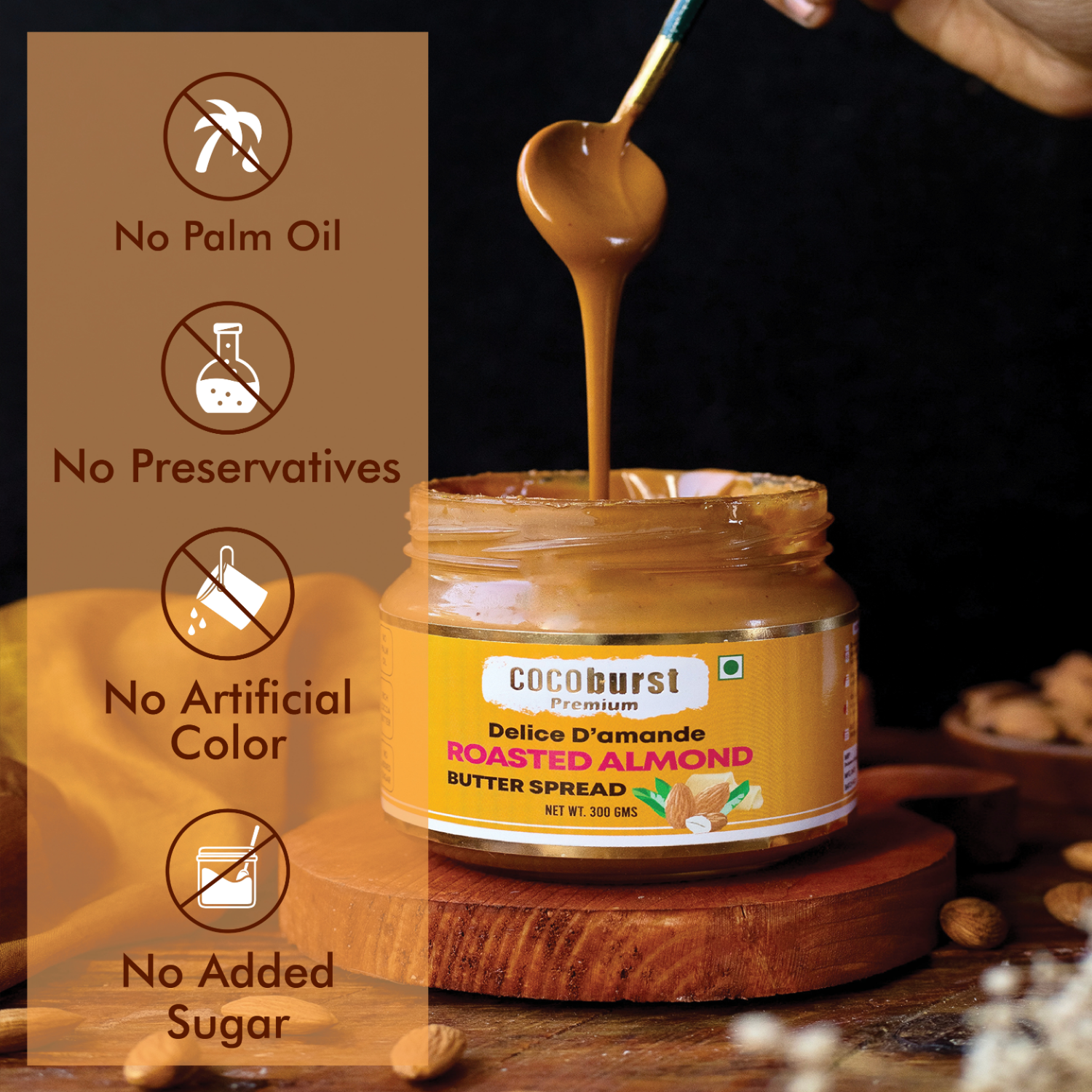 Cocoburst Roasted Almond Butter Spread A Royal, Luxurious Unsweetened Spread Made with 95% Roasted Almonds, No Added Sugar.