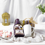 DIY Drinking Chocolate Hamper with Mocha/Cinnamon/Cocoa powder, Syrup, mug, marshmallows in a tray
