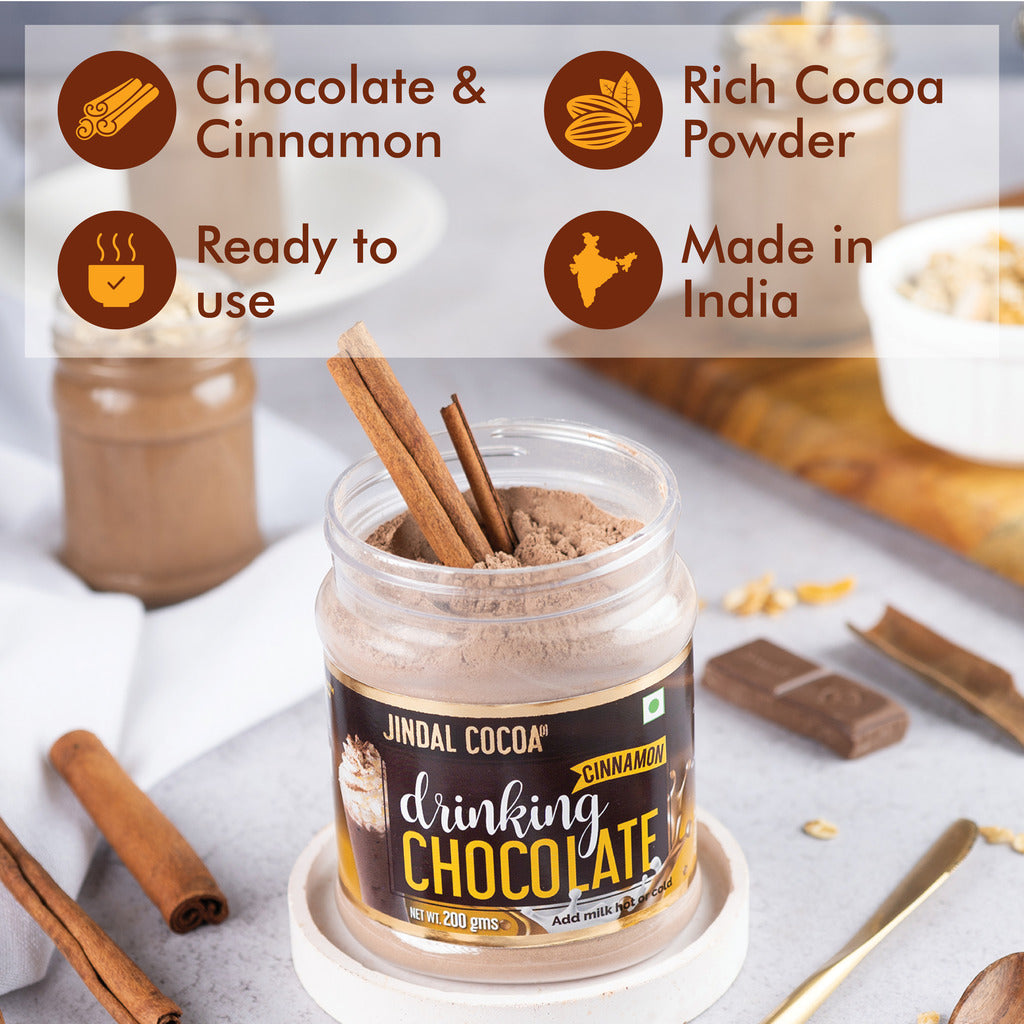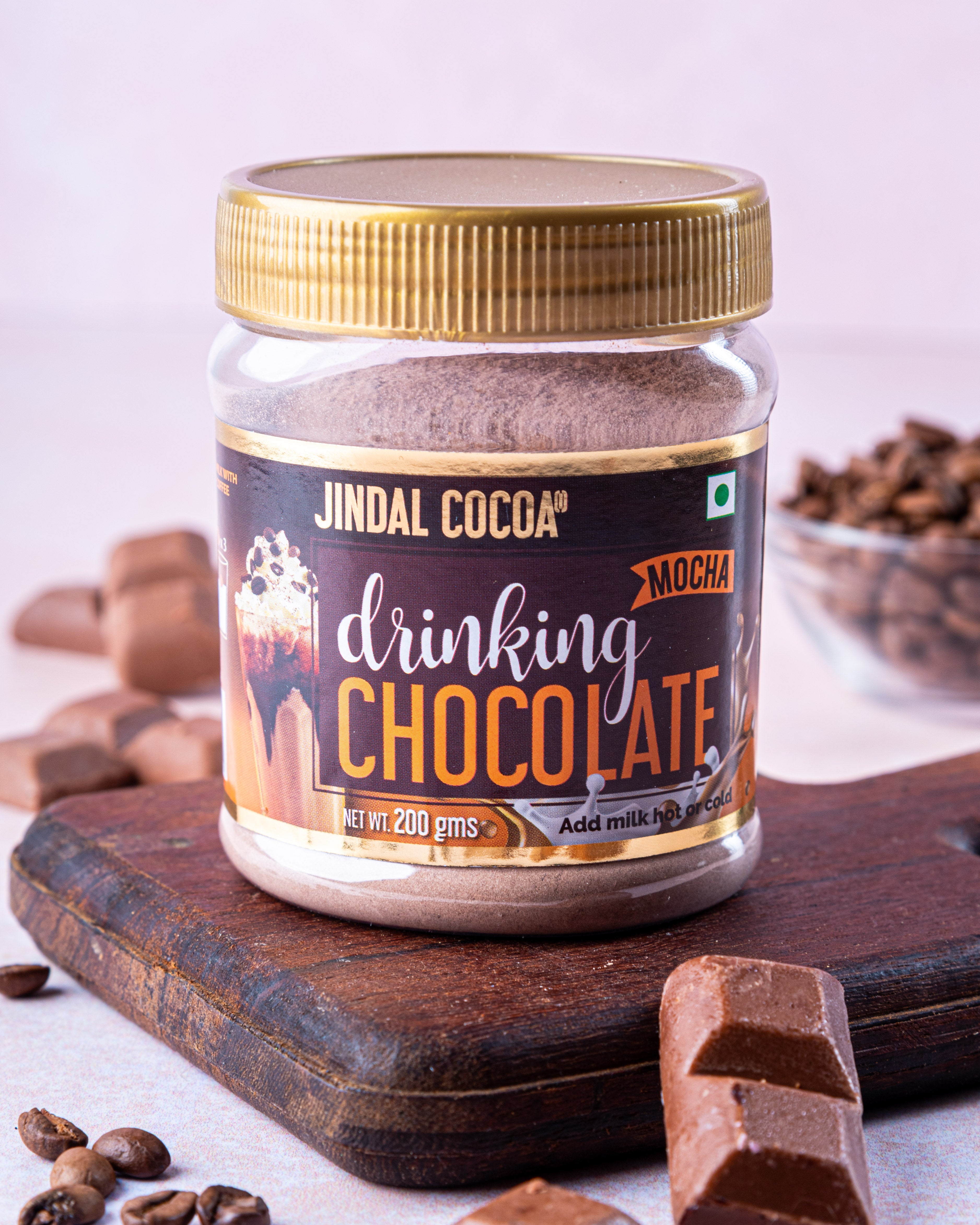 - Jindal Cocoa Drinking Chocolate Mocha/Cinnamon/Cocoa Powder Makes an Irresistible Chocolate Milkshake/Latte or a Warm Cup of Drinking Chocolate.