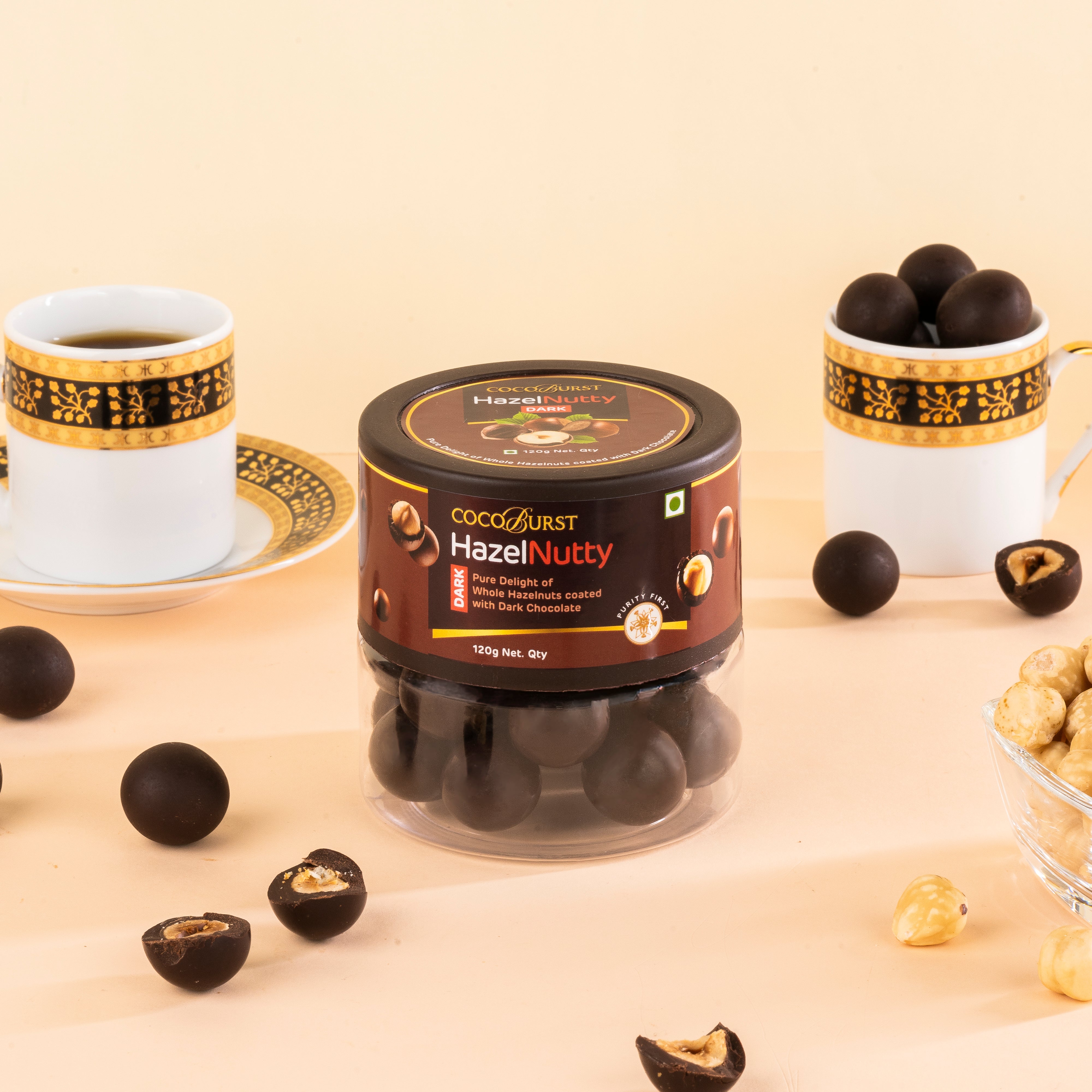 - Whole Roasted Hazelnut dipped in Real Dark Chocolate (120gm)